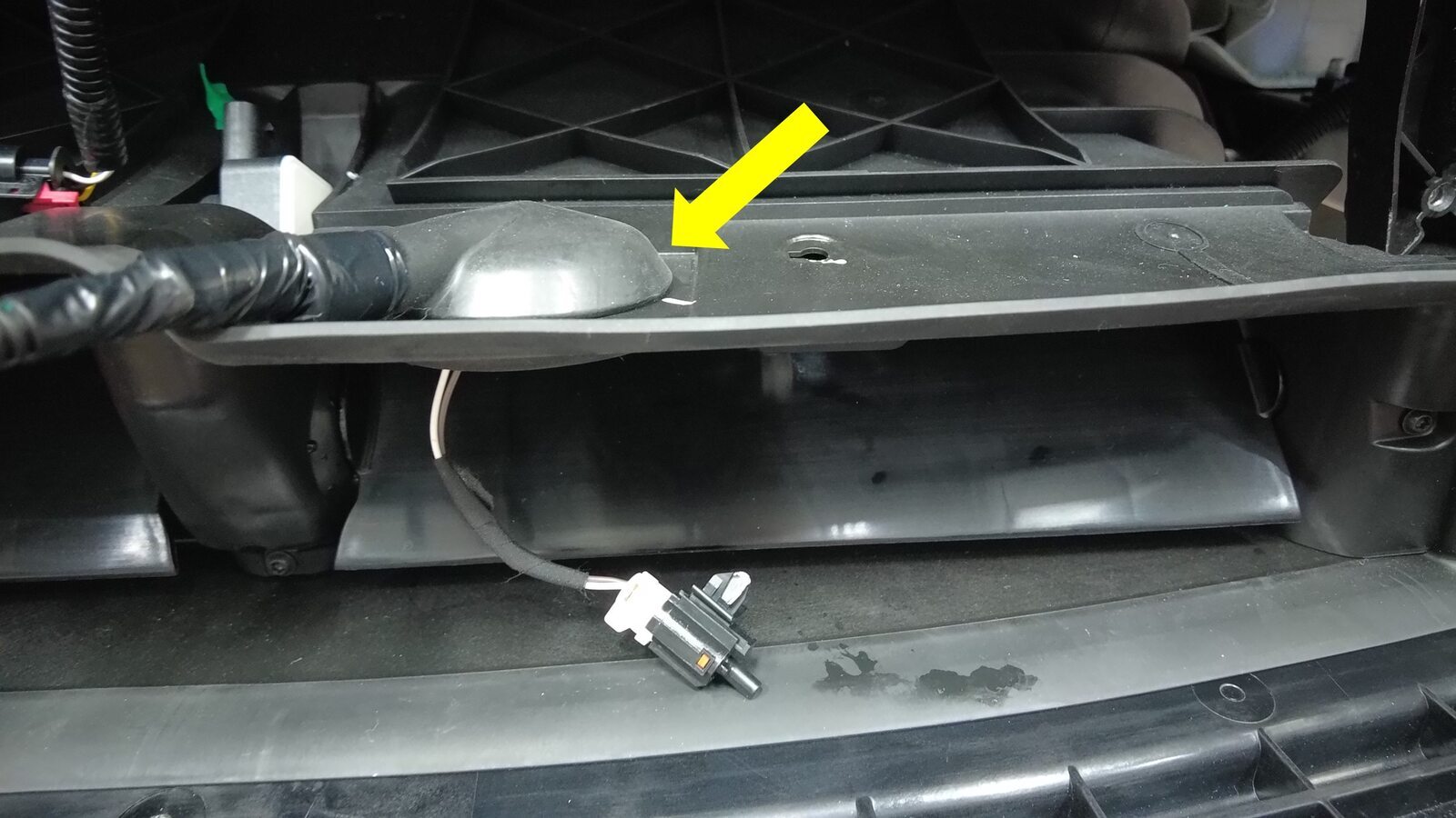 将环境温度传感器穿过主动进气格栅上开口,然后安装环境温度传感器盖板。