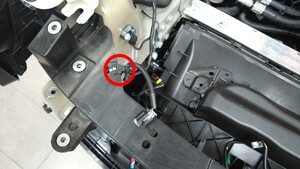 将前端支架和电气线束放置在车辆上,然后安装将前端支架固定到车辆的锁片(2 个)。