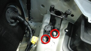 拆下将左侧弹射器支架固定到车身的螺栓(2 个)。