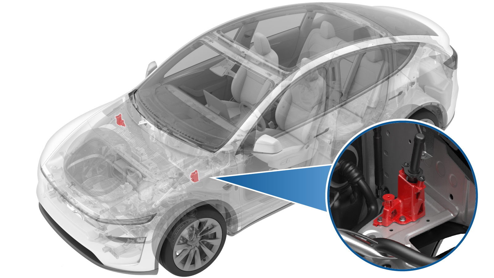 - 安装左侧行人保护传动装置。请参阅 执行器 - 行人保护 - 主动防护前罩 - 左 ((拆卸和更换))。