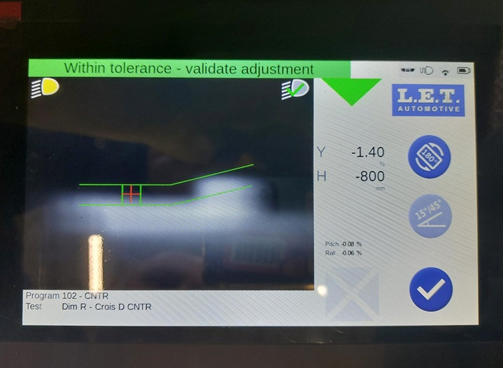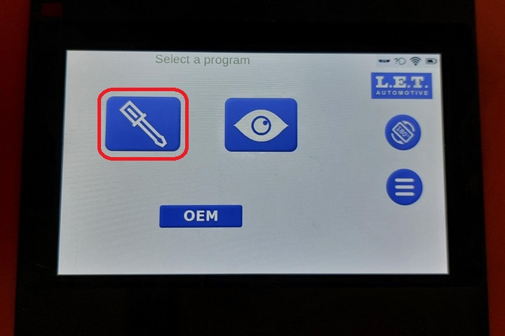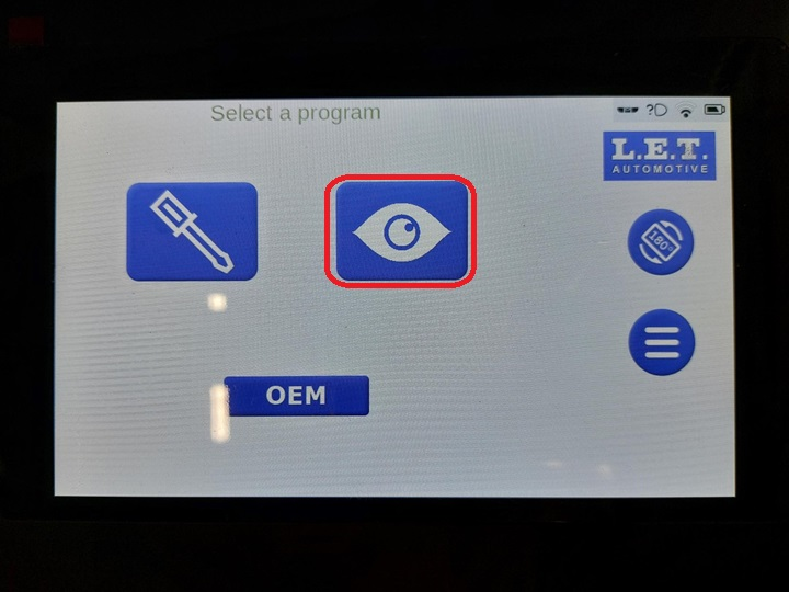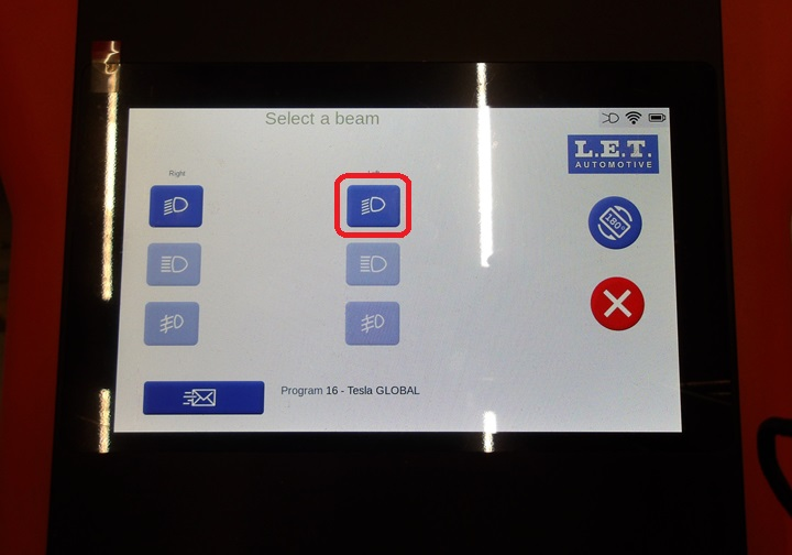 Select the "eye" icon on the LET headlight aimer, and then select the left headlight icon.