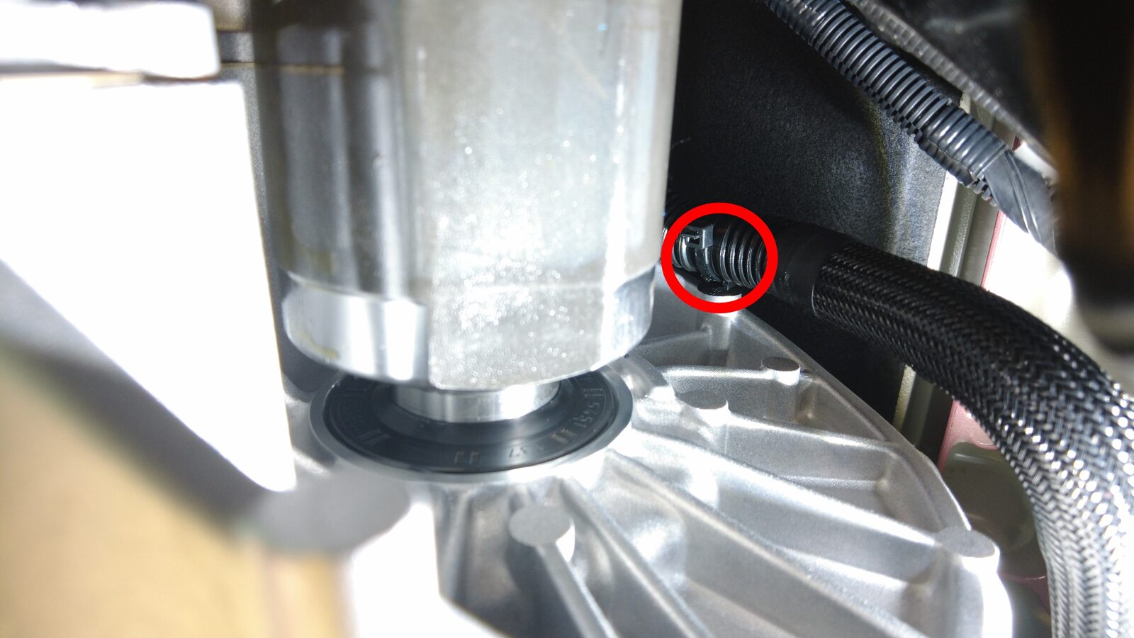 拆下塞子,将后驱动单元变流器至油冷器软管紧固到热交换器上。