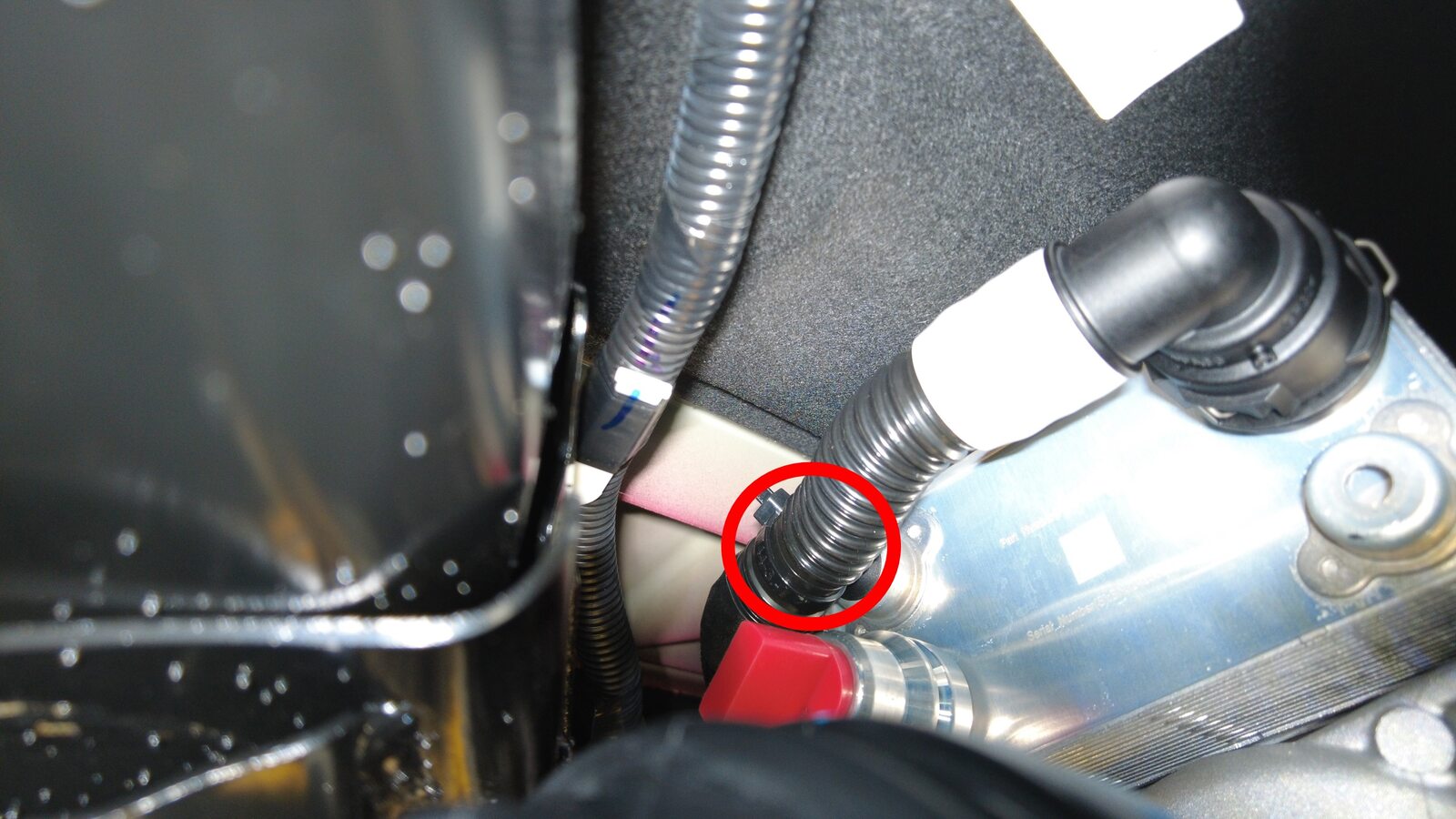 将后驱动单元变流器冷却液软管从热交换器上松开,然后堵住两个软管末端。