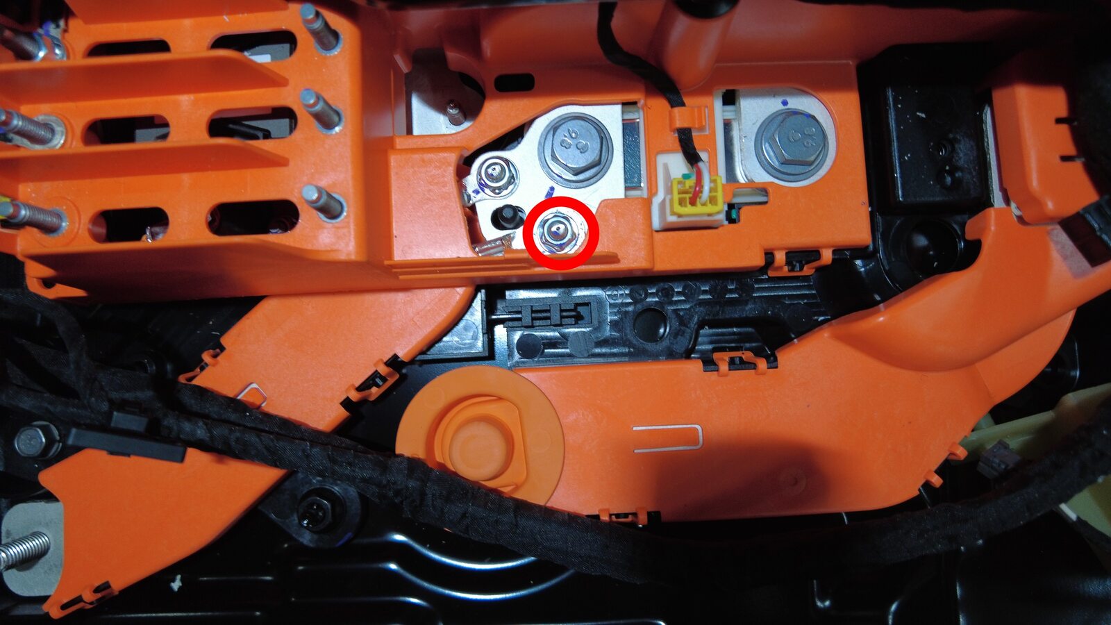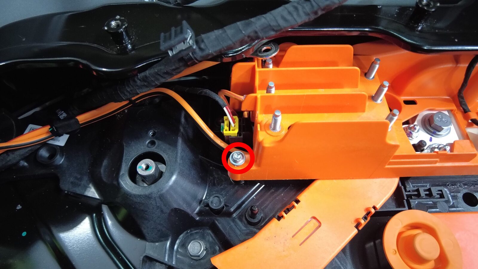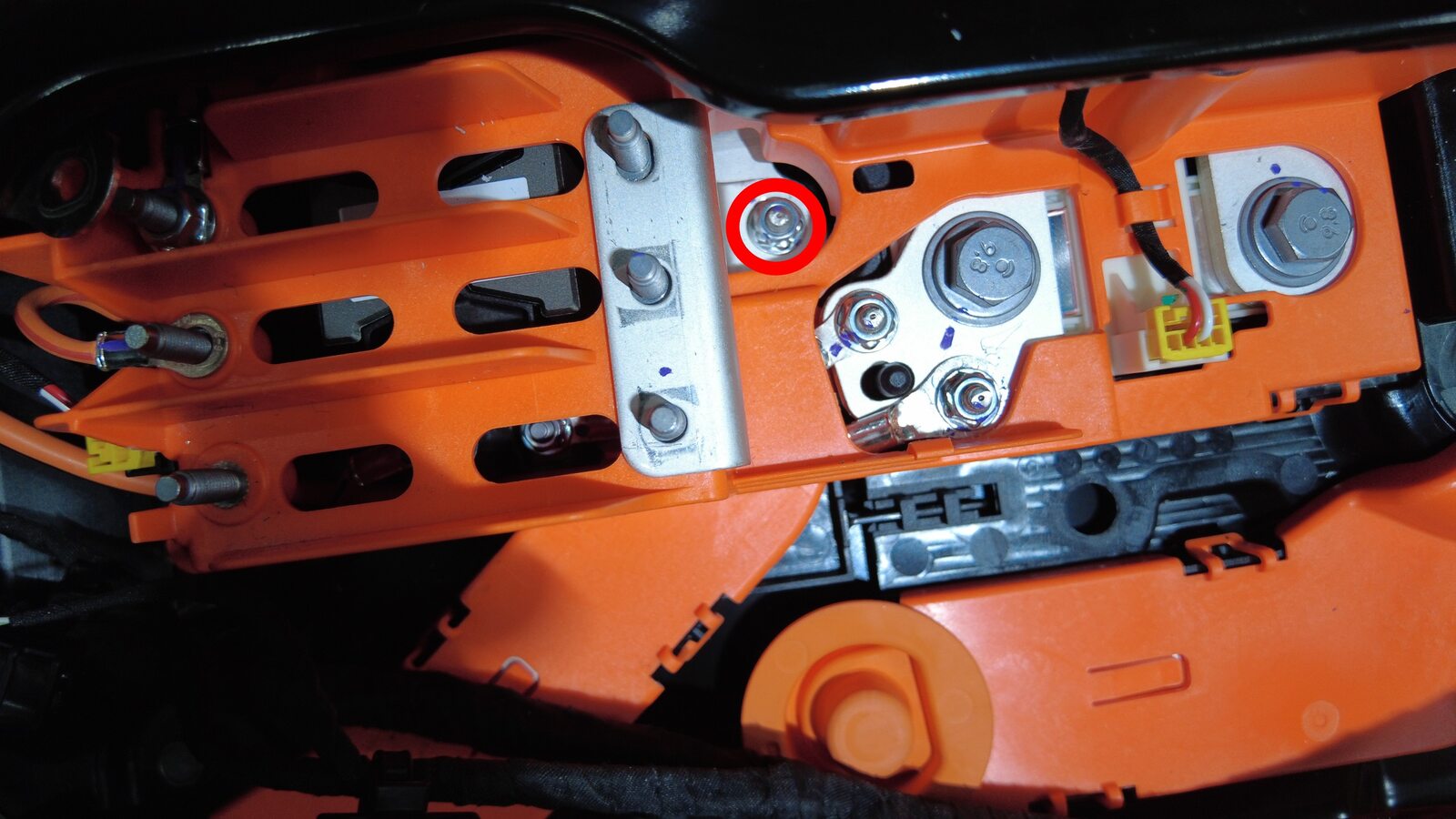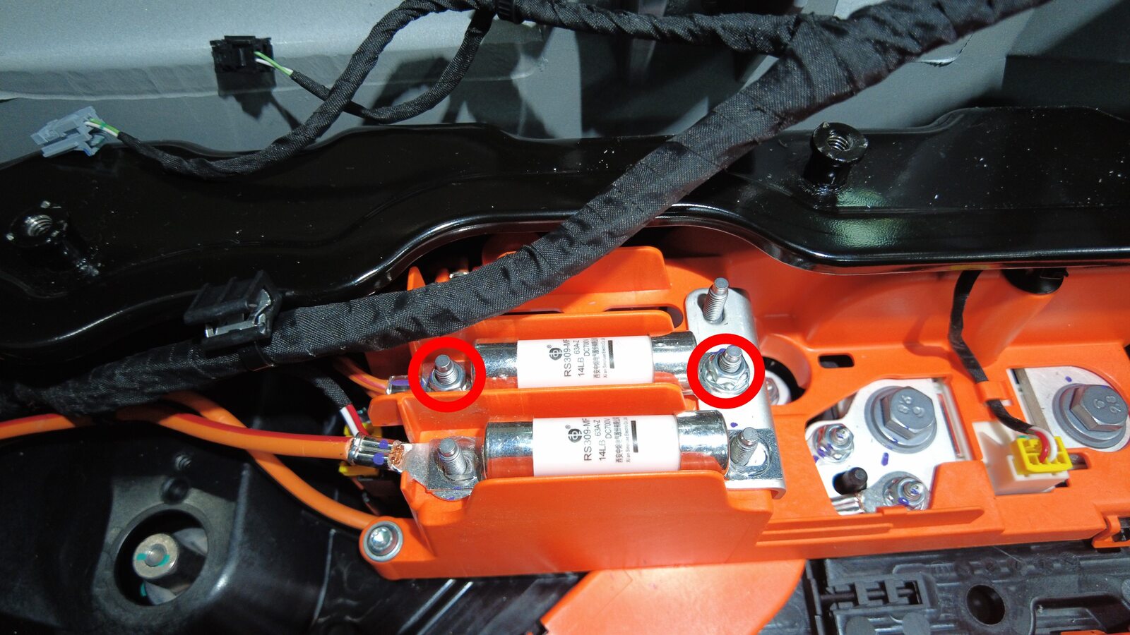 | 将负极输出至直流母排充电器线束固定到负极高压电池直流链路母排的螺母 |