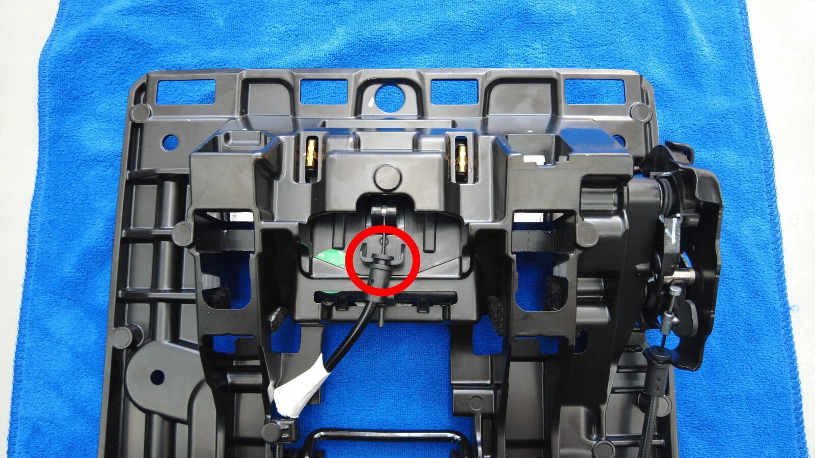将 20 百分比闩锁传动装置线缆安装到座椅肩部折叠开关上。