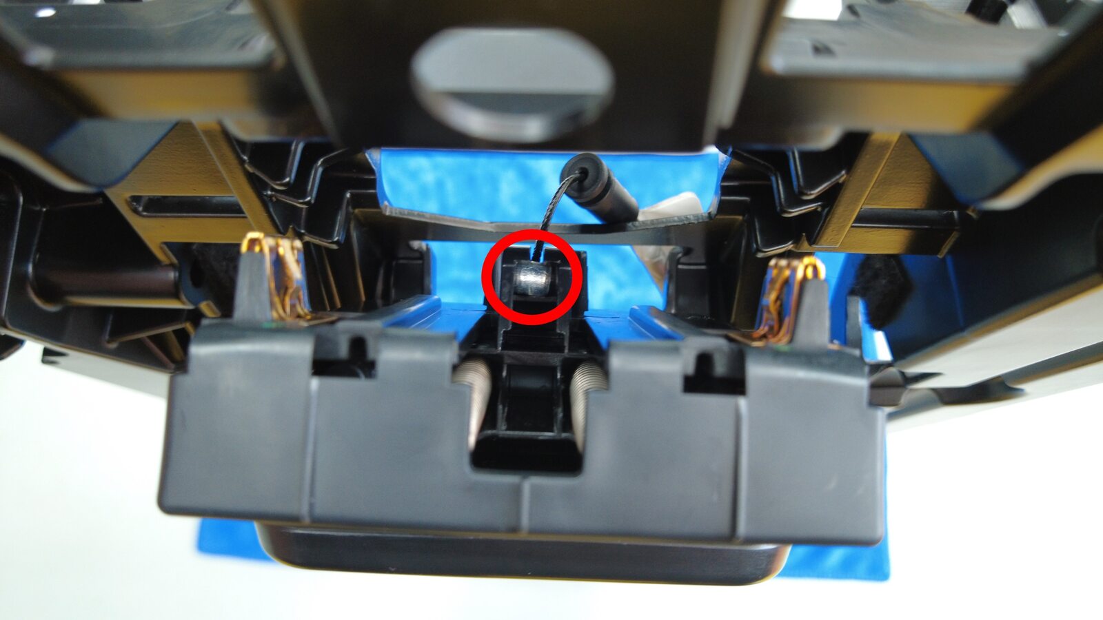 将 20 百分比闩锁传动装置线缆从座椅肩部折叠开关上松开。