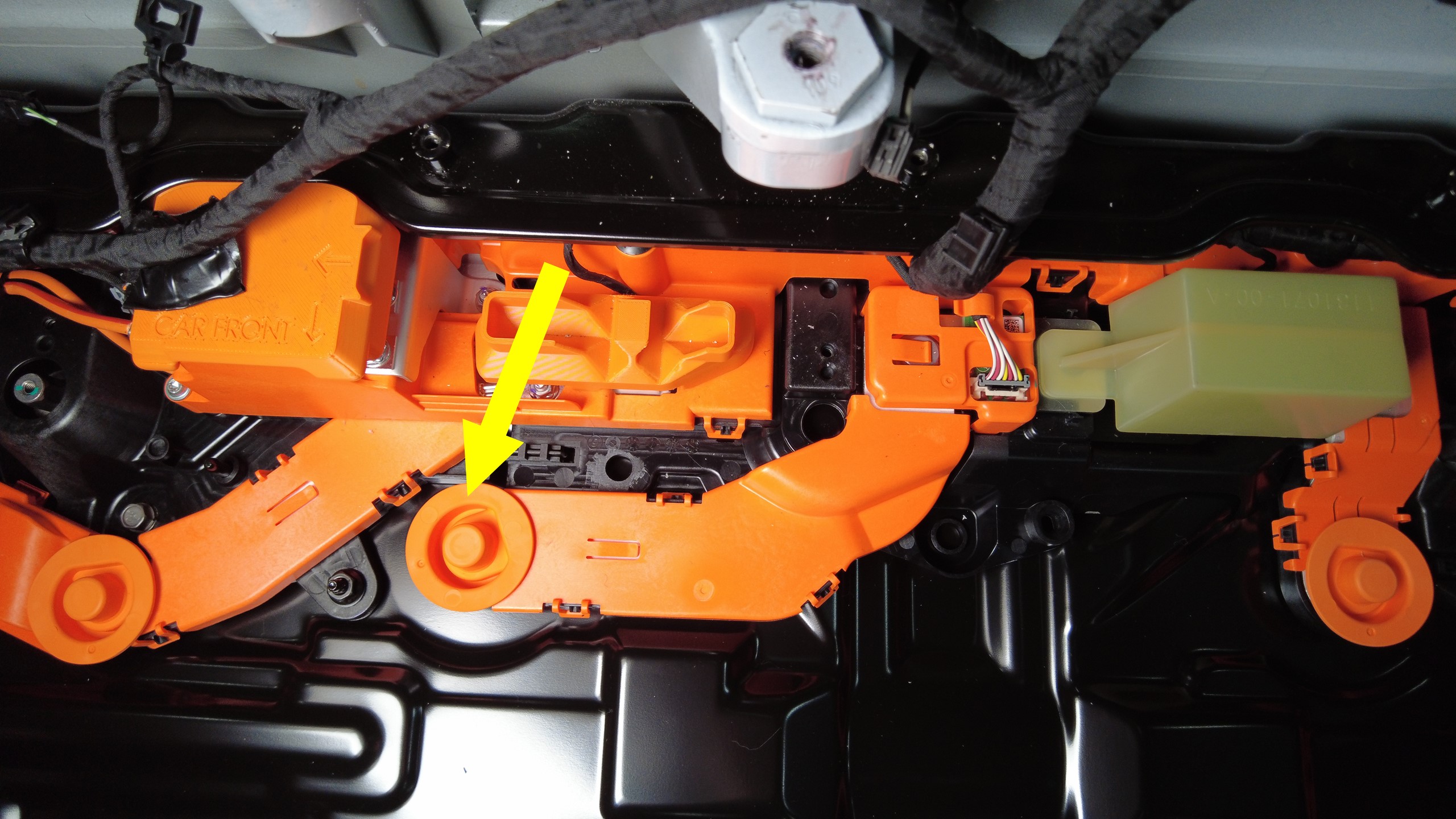 - 将功率转换系统向上抬出高压电池仓区域并从车辆上拆下。请参阅PCS 总成 ((拆卸和安装))。