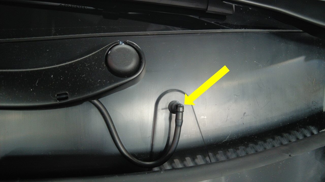 注确保将软管排布到右侧雨刮器臂下方。