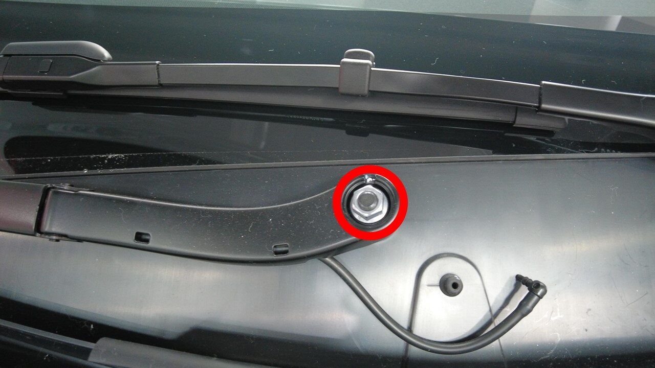 拆下右侧雨刮器臂螺母。