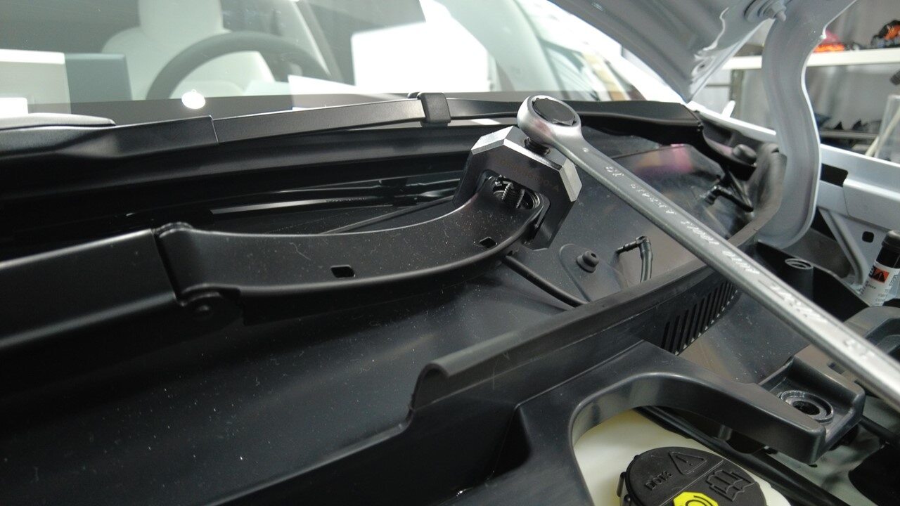安装右侧雨刮器臂螺母。