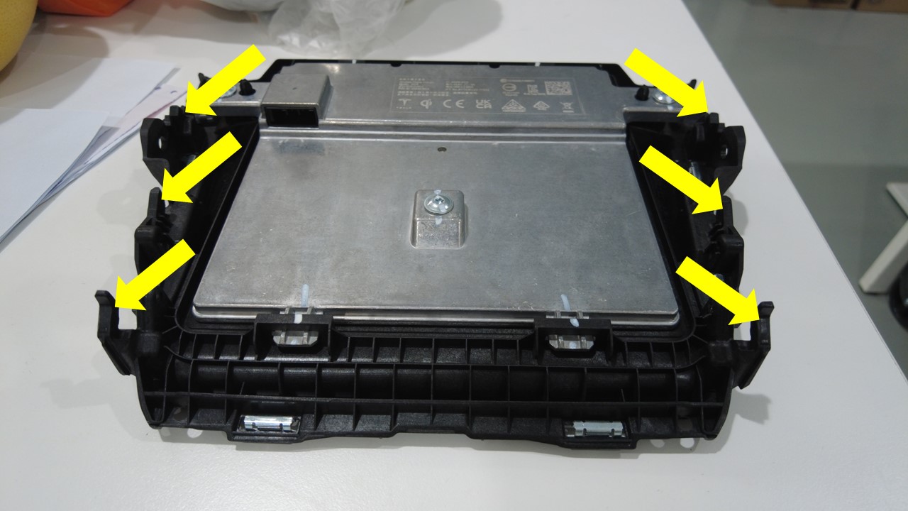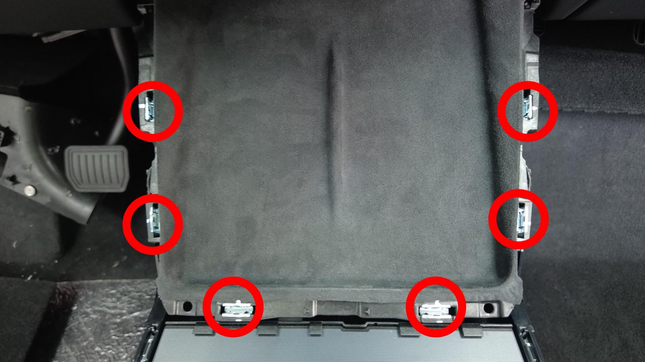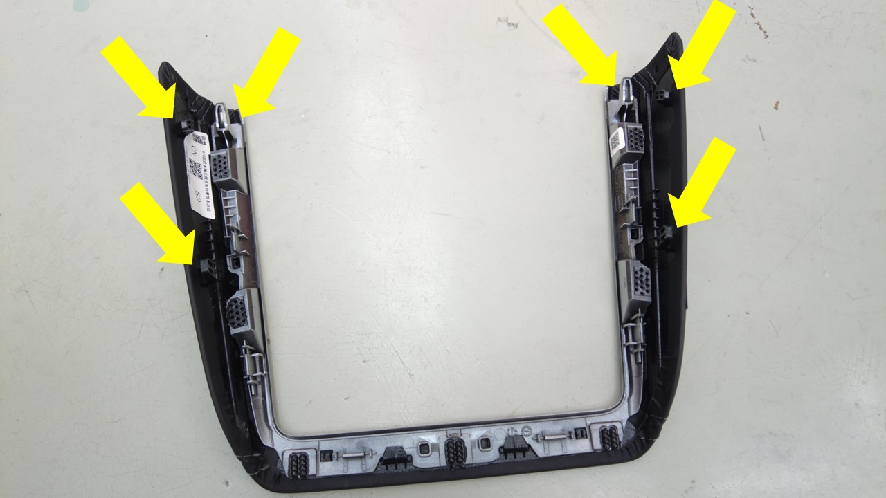 拆下将手机托盘外围固定到中控台的导片(6 个)和卡子(6 个)。