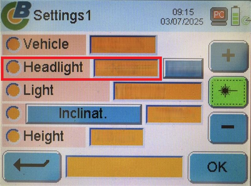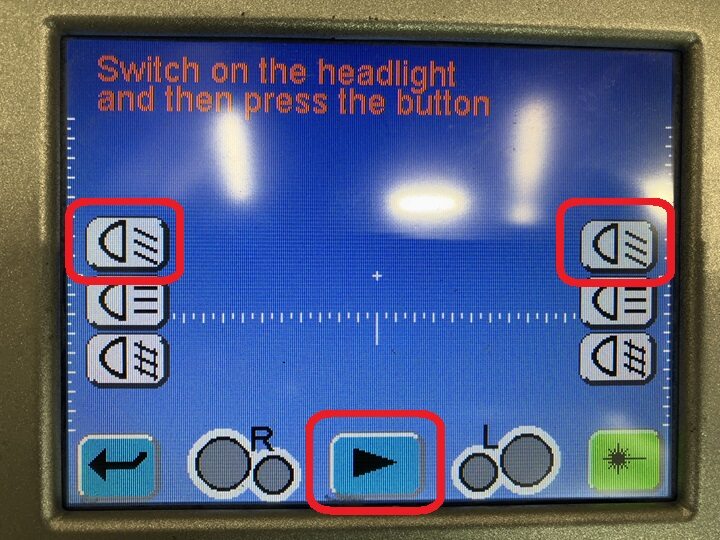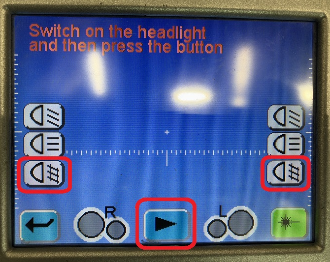 Select Headlight (LHD or RHD option) on the headlight aimer: