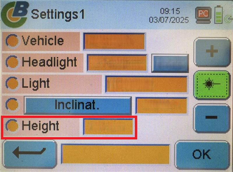 Select Height on the headlight aimer.