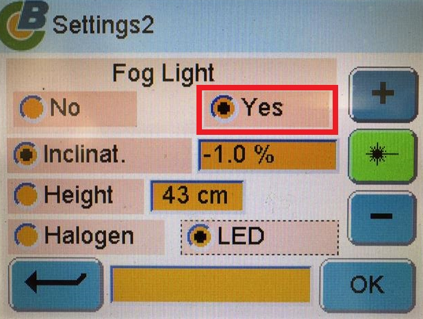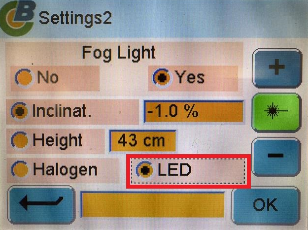 Select fog light type on the headlight aimer.