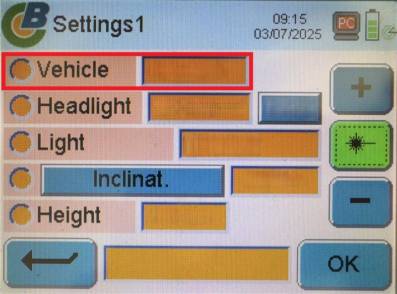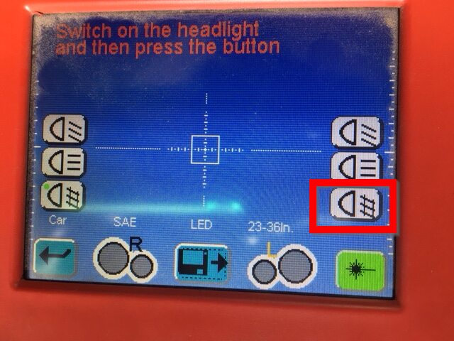 Select the headlight type on the headlight aimer.