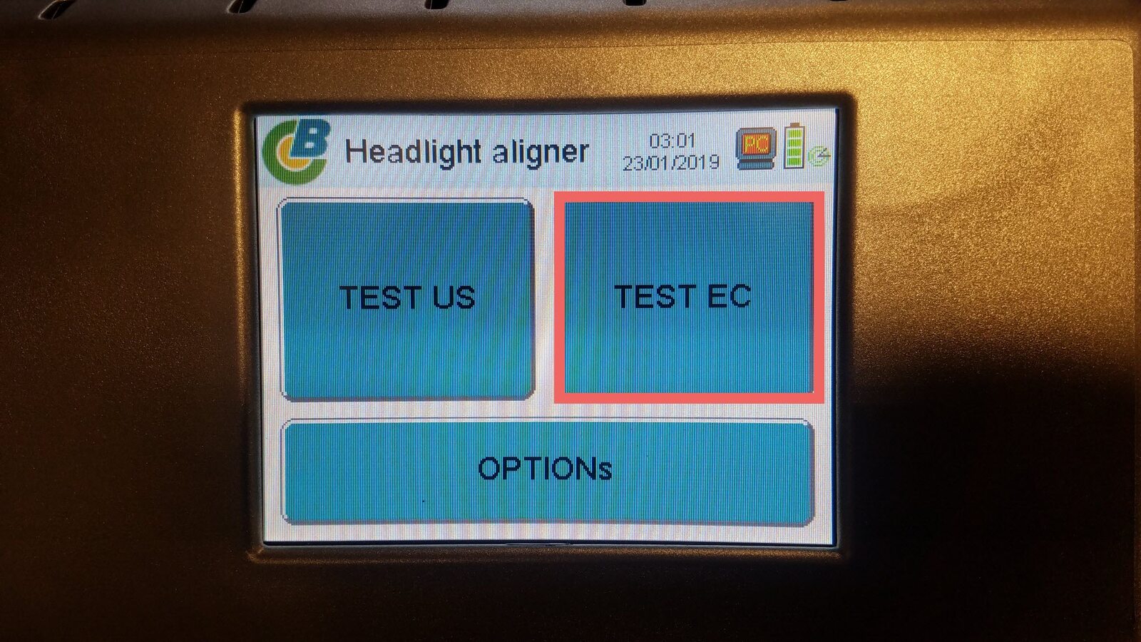 - Power on the headlight tester.