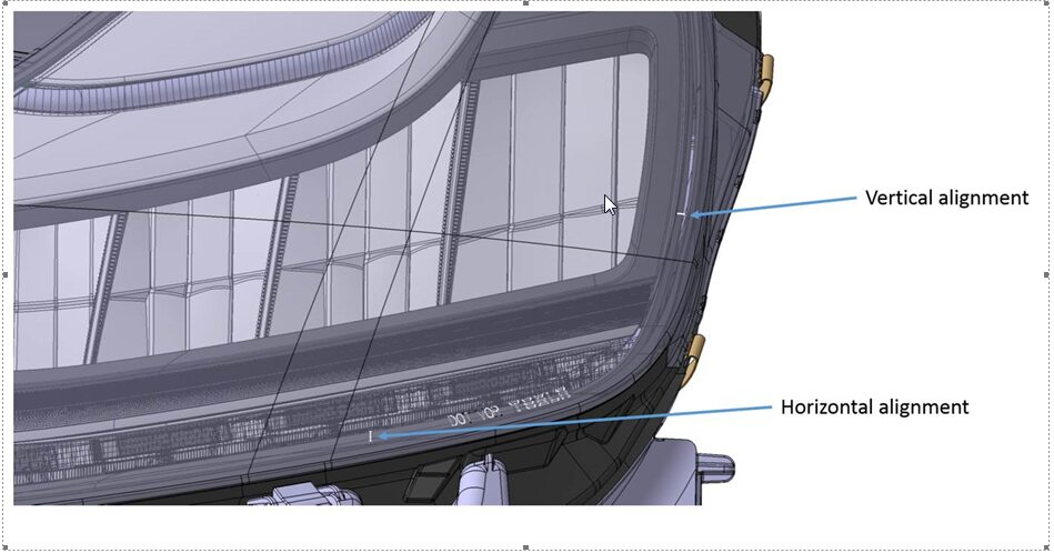 注Note down the Headlight "V" and "H" values in internal notes in SCA. State which headlight side the values are for (LH or RH).