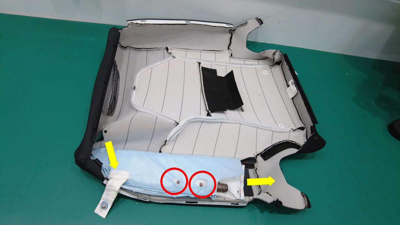 将第三排左侧座椅靠背头部侧气囊从滑槽上拆下。