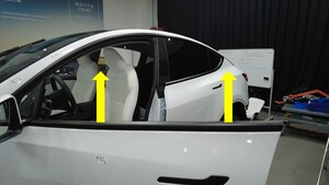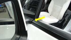 将左前车门外密封条向下按压并紧固到车门总成上。