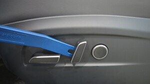 使用饰板工具小心地松开将驾驶位座椅靠背倾角调节开关按钮固定到座椅总成的卡子,然后将按钮从总成上拆下。