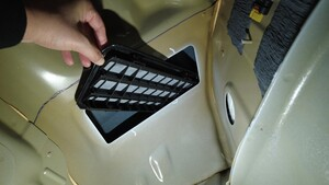 将左侧抽气机推入车身面板,然后向外旋转,将其从车辆上拆下。