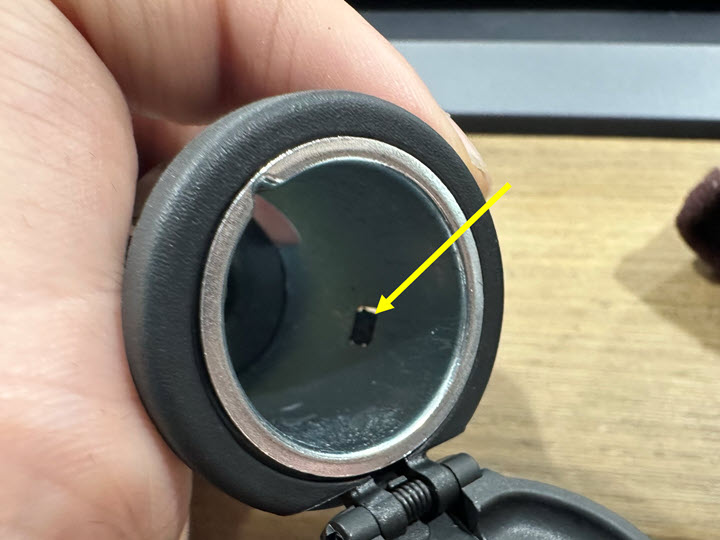 将电源插座穿过杯托总成安装入位,然后紧固锁片。