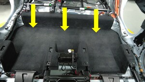 将后部地毯放置到车辆上,然后安装将驾驶室后部主地毯固定到车身的推拉式卡子(7 个)。