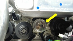 松开锁片,然后断开驾驶室右侧冷凝器膨胀阀上的电气连接器。