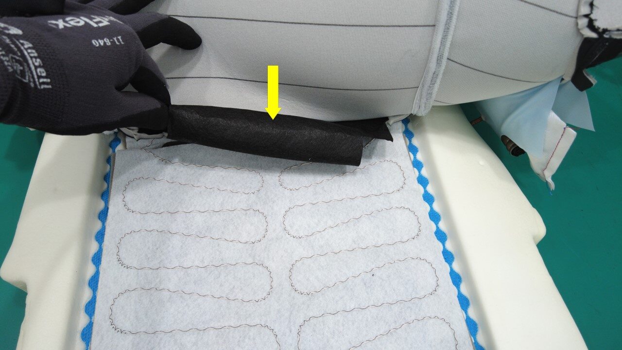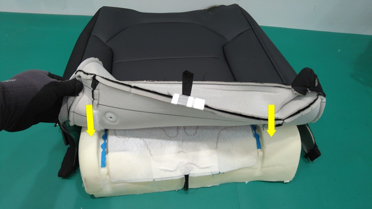 将第三排左侧座椅靠背饰板安装到座椅靠背泡沫上。