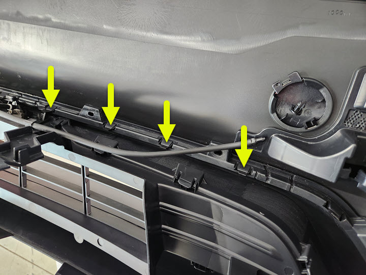 紧固将前饰板电气线束固定到前饰板总成的夹子(4 个)和挂钩,然后将线束连接到两侧端子上。
