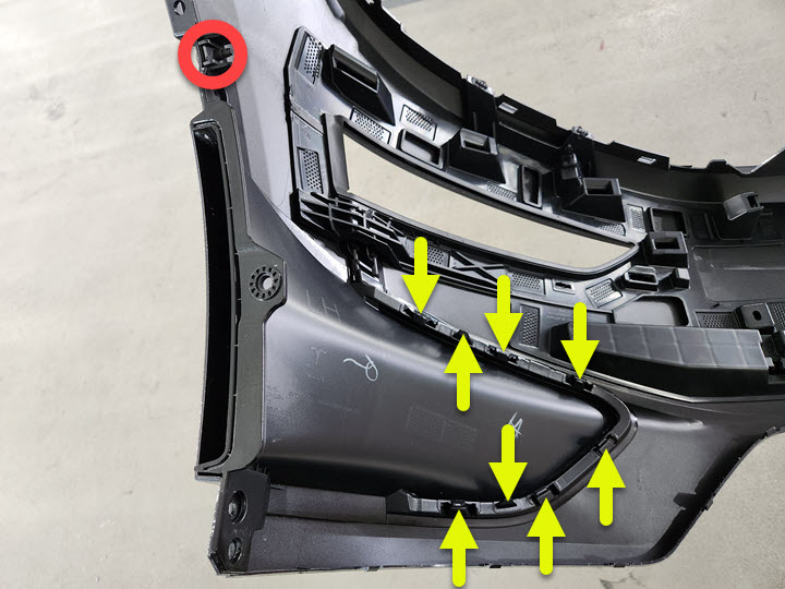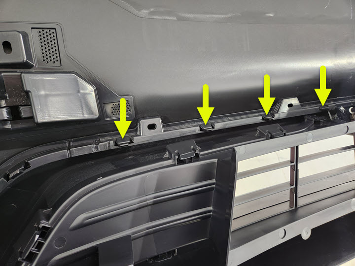 拆下将前饰板下部总成固定到前饰板上部总成的螺栓(2 个)和卡子(18 个)。