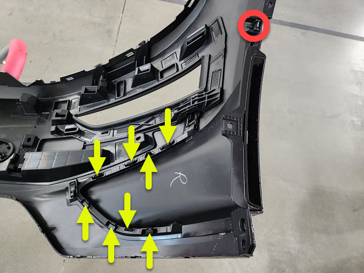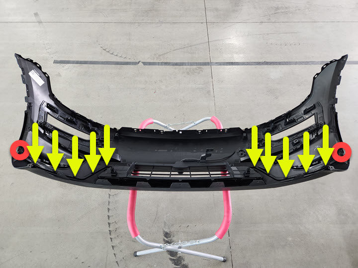 安装将前饰板下部总成固定到前饰板上部总成的螺栓(2 个)和卡子(18 个)。