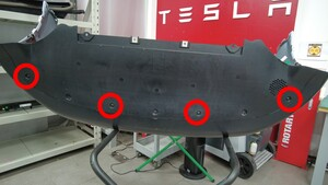 拆下将前裙板固定到前饰板总成的螺栓(6 个),然后松开锁片(6 个)。