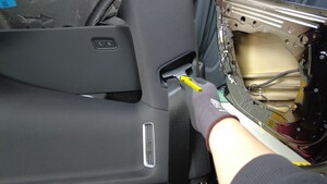 安装新的螺栓,将第二排左侧座椅安全带下部锚固件固定到车身。