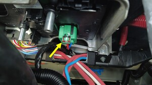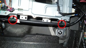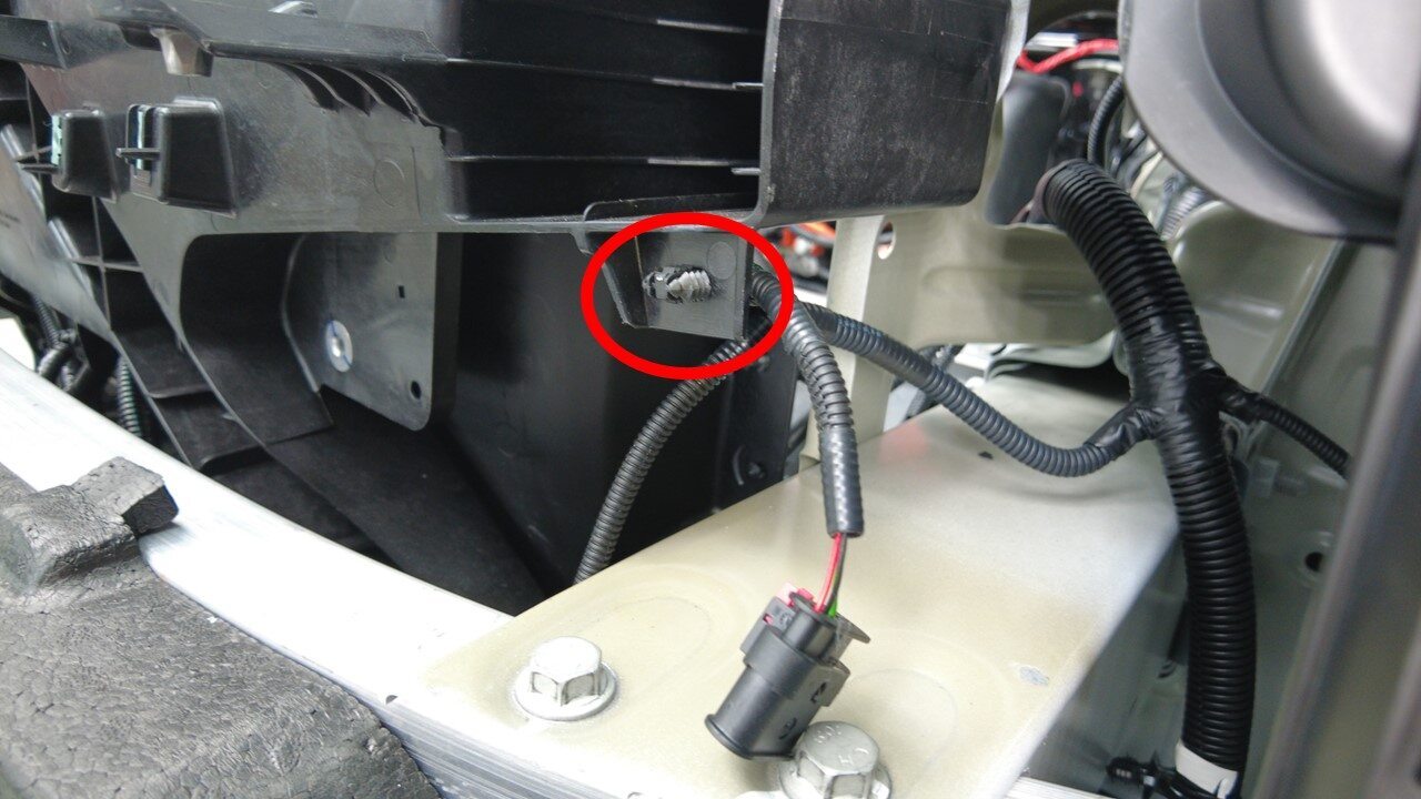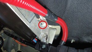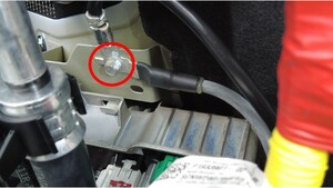 拆下将正极跳线柱固定到前围篦板支架的螺柱。