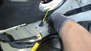 安装将电气线束固定到右侧 A 柱的螺栓。