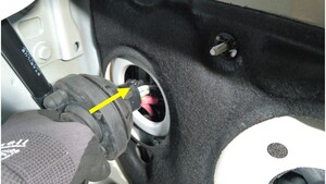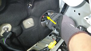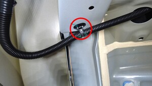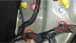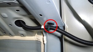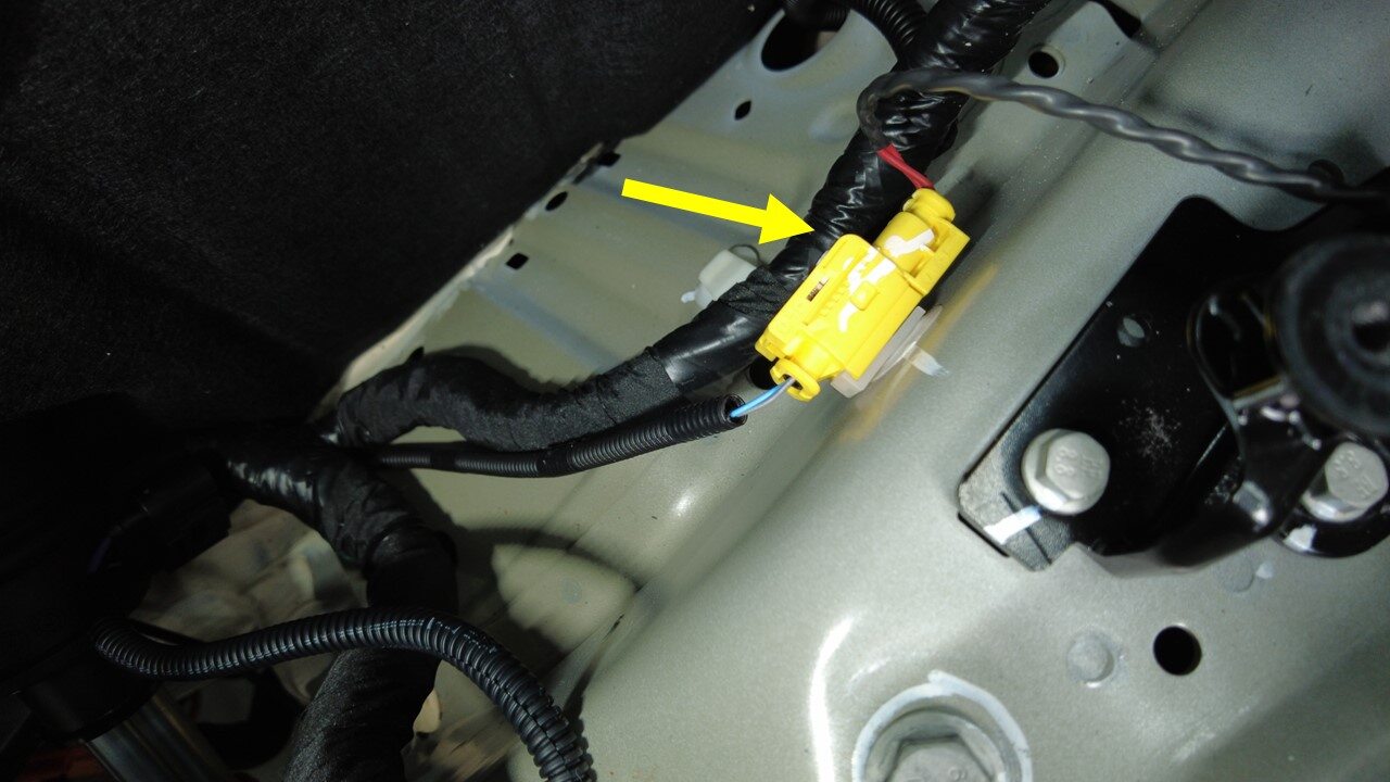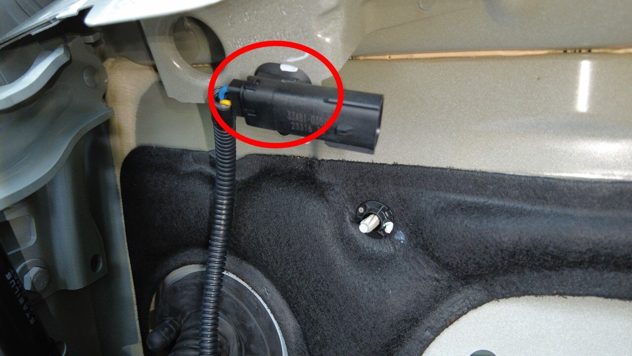 连接行人警示连接器,然后安装将行人警示线束固定到扬声器的夹子。