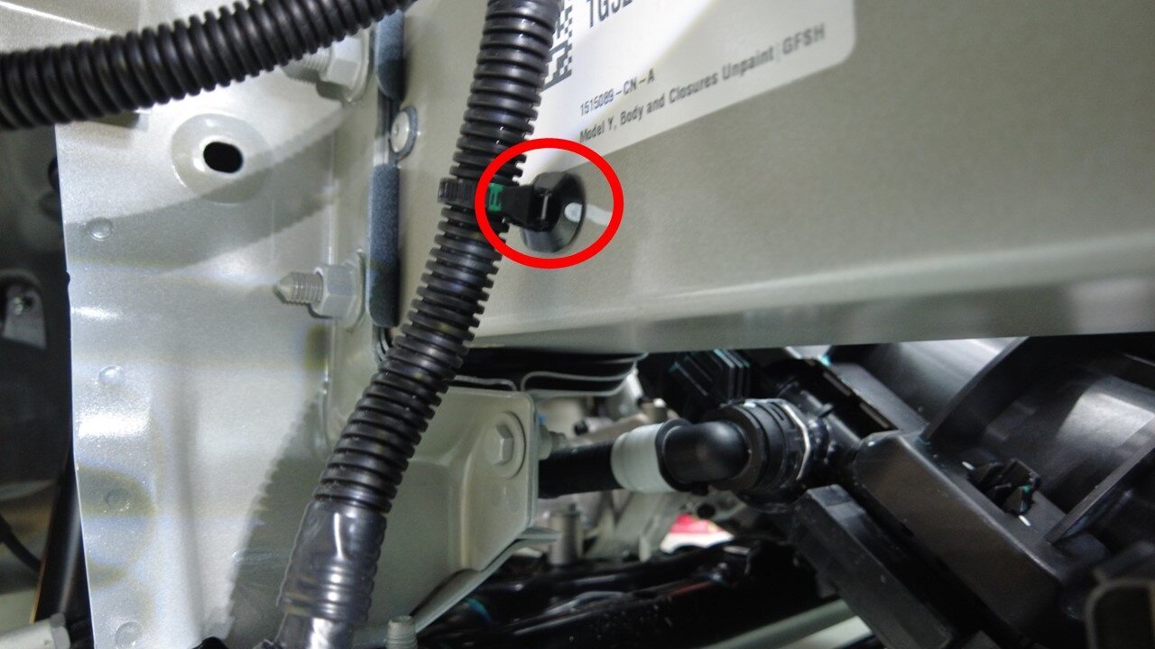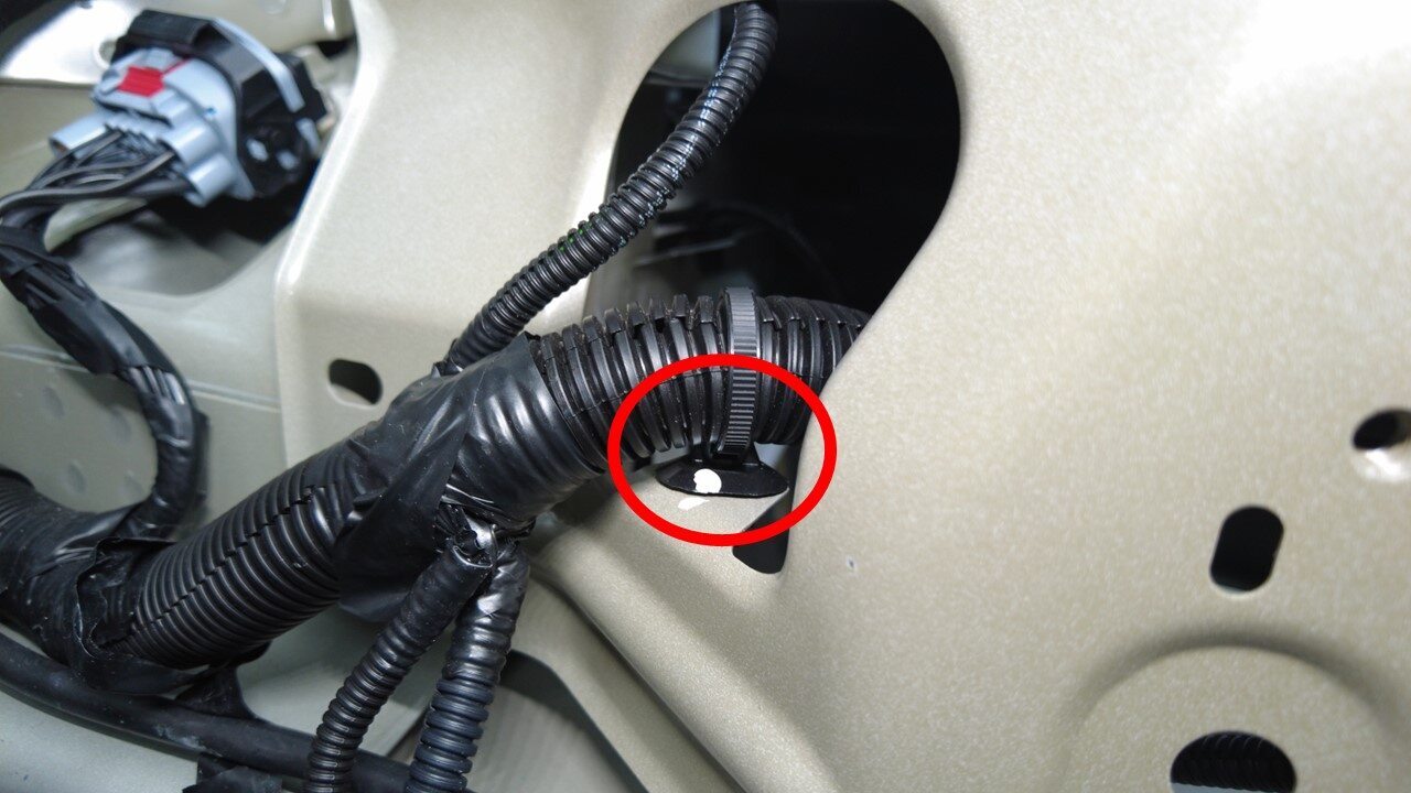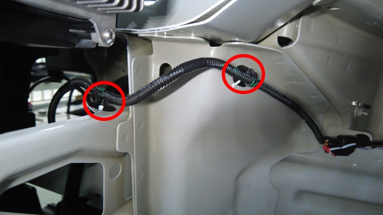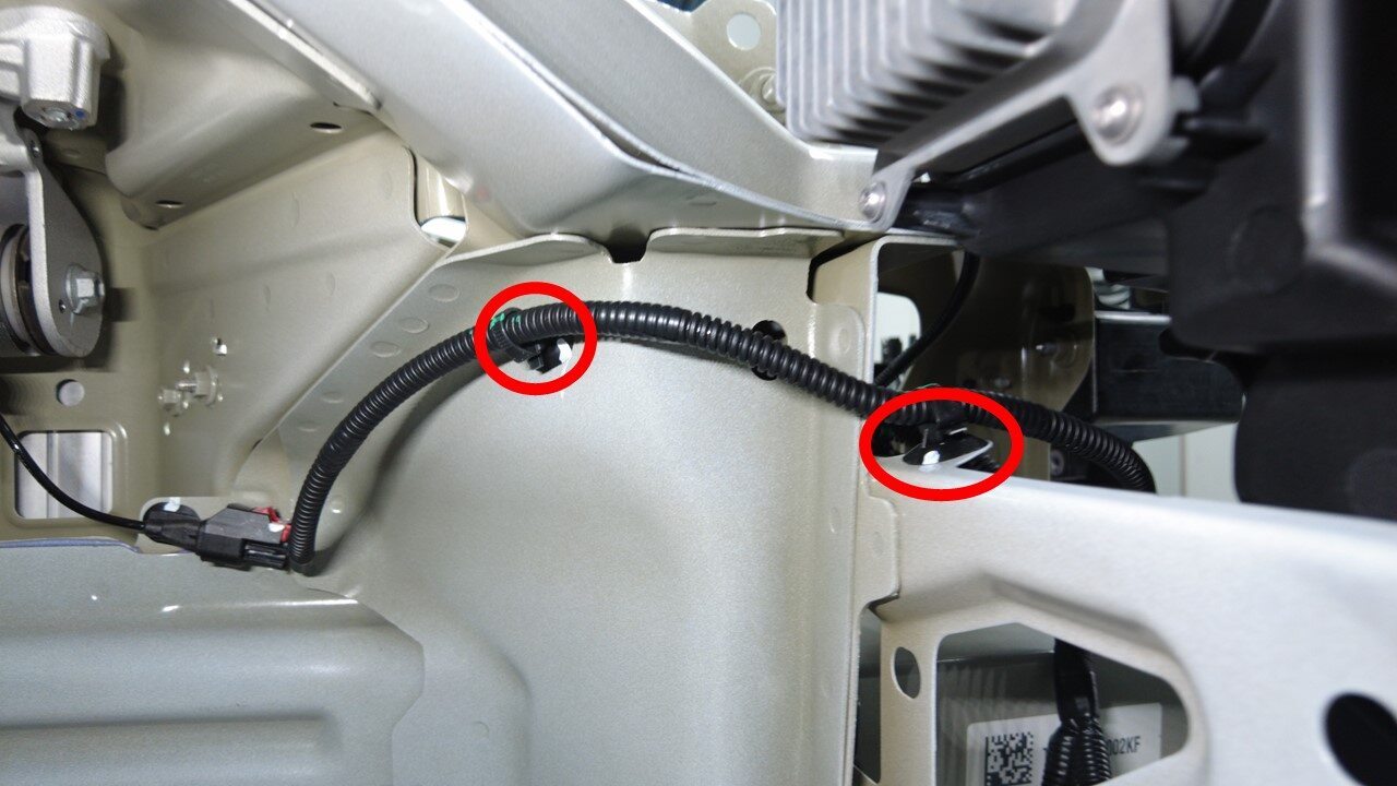 安装将转向机线束固定到前备箱储物单元加固支架的夹子(3 个)。