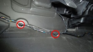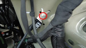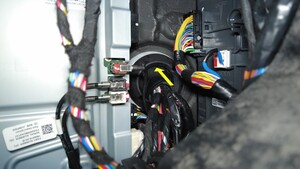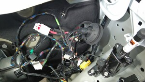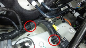 松开将方向盘线束固定到前副车架的前部线束夹,然后将线束置于一旁。