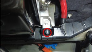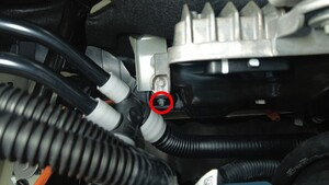 | 将前部线束接地端子固定到车身的螺栓(位于左前减震塔处) |