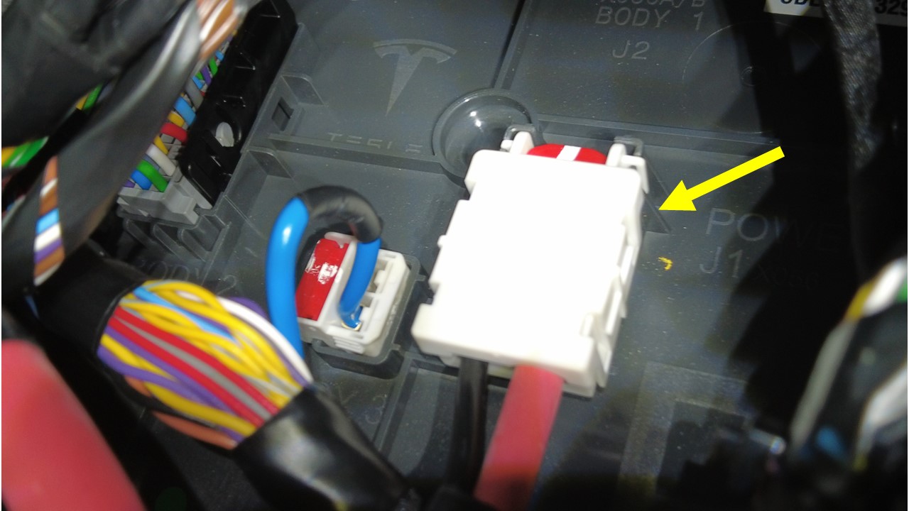 将 J1 电源电气连接器连接到右侧车身控制器模块。