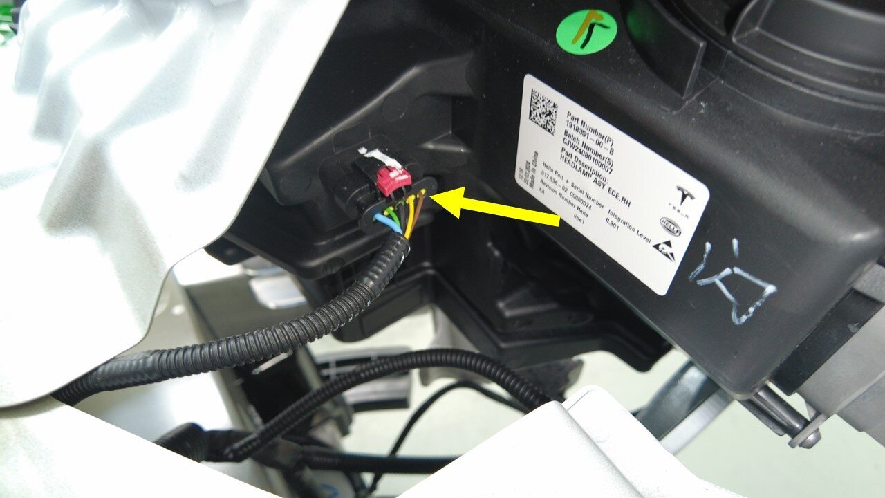 将电气连接器连接到右侧前端模块支架碰撞加速度计传感器上。