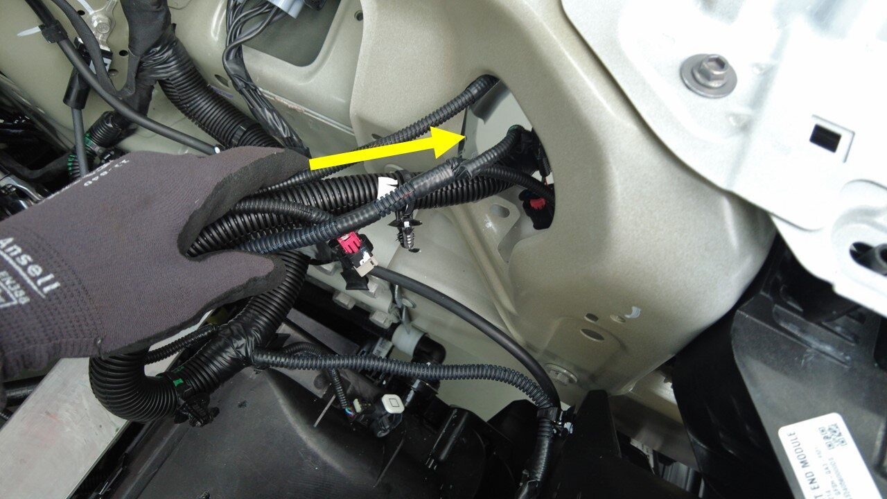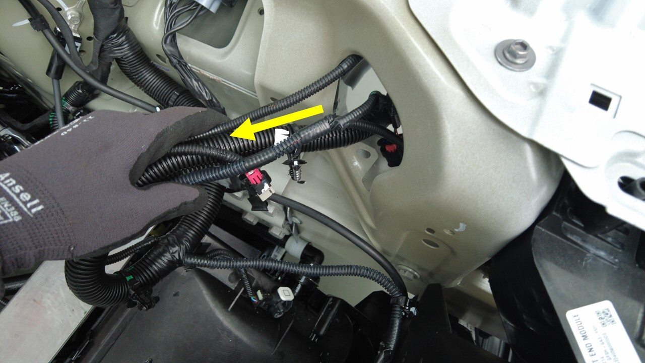 将前部线束右侧穿过右侧前端模块支架总成布设好。