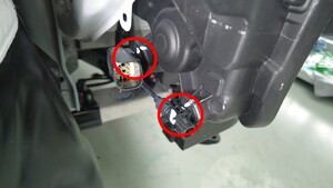 | 将前部线束接地端子固定到车身的螺栓(位于右前减震塔处) |