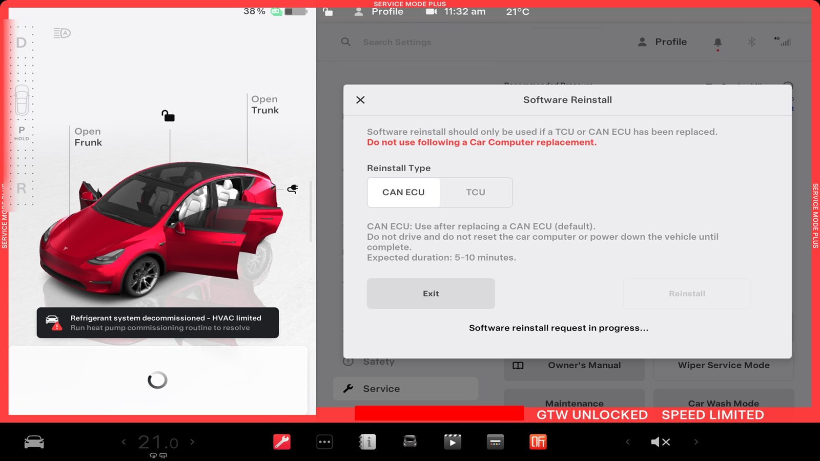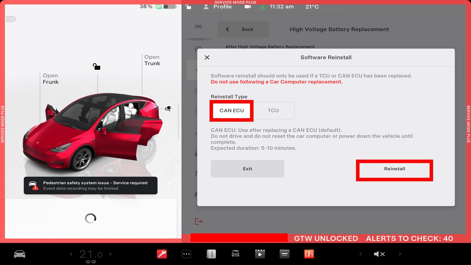 注Software Reinstall > CAN ECU > Reinstall, Allow routine to complete, ensure routine is successful
