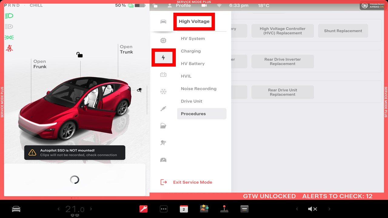 Select "High Voltage Battery Replacement" through the touchscreen.