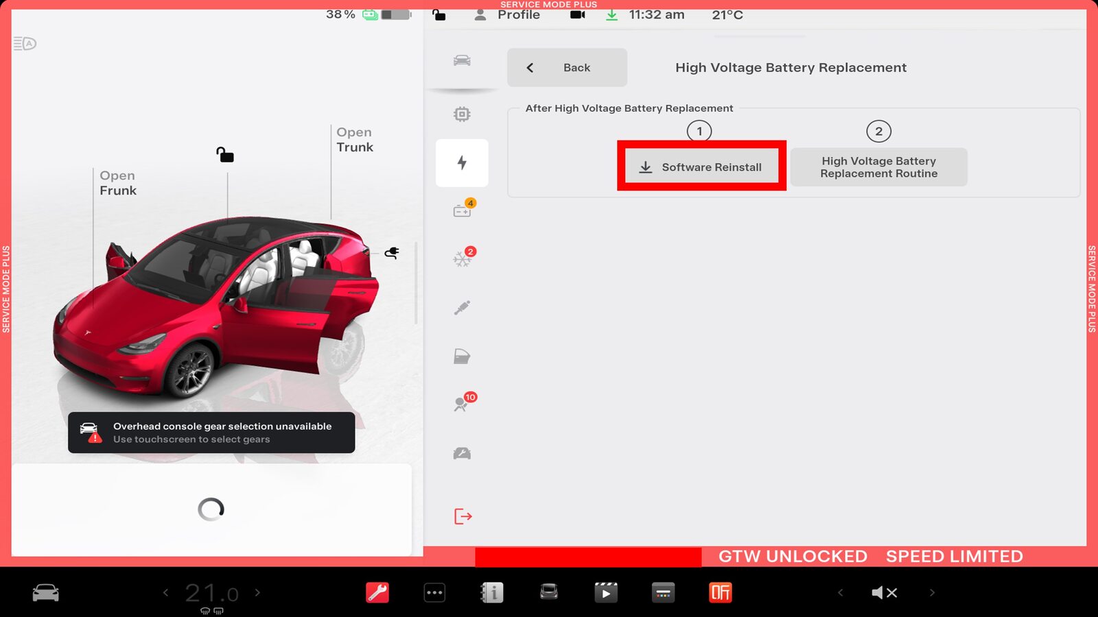 Select "Software Reinstall" through the touchscreen.