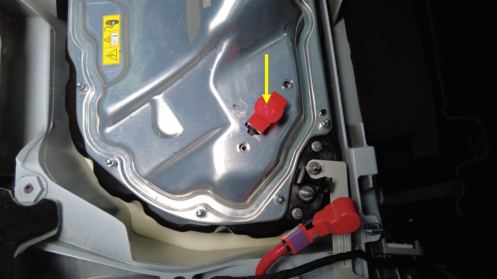 图 1. 烟火电池断接开关固定到高压电池仓盖板支架上 图 2. 烟火电池断接开关固定到高压电池右后角 -