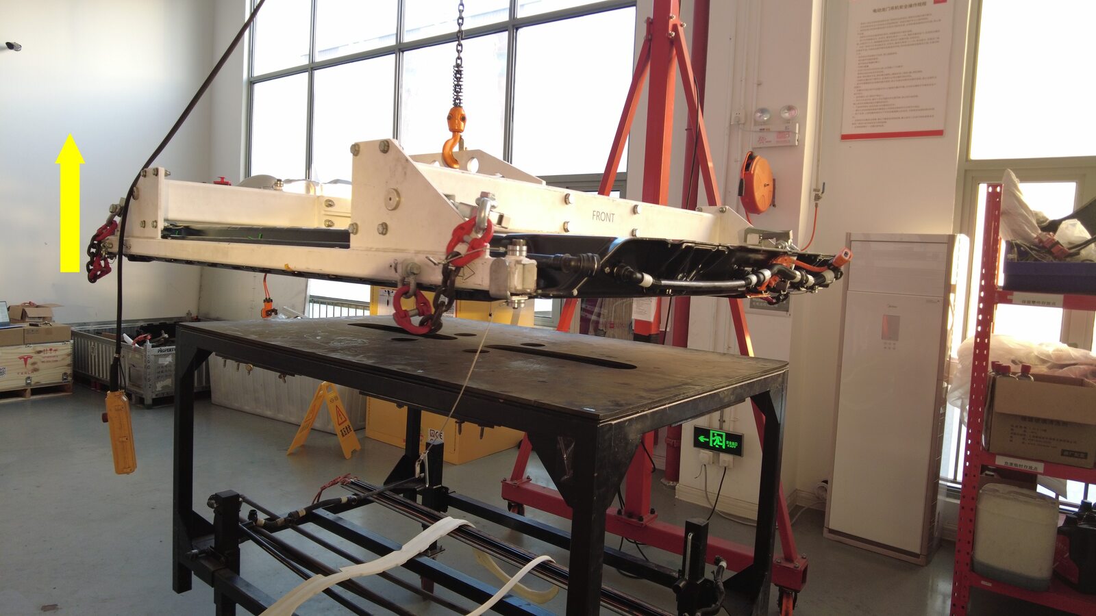 Move the gantry away from the HV battery crate and over the HV battery table.