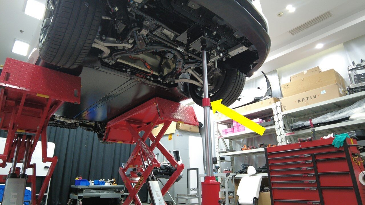 图 3. 左侧如图所示,右侧类似 - 将运送千斤顶从车辆下方移走。